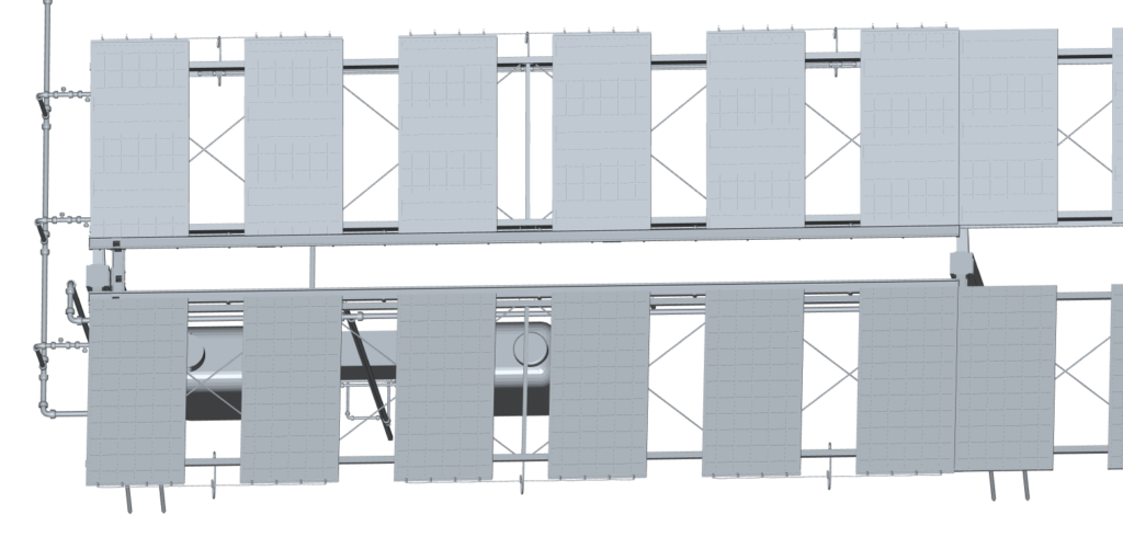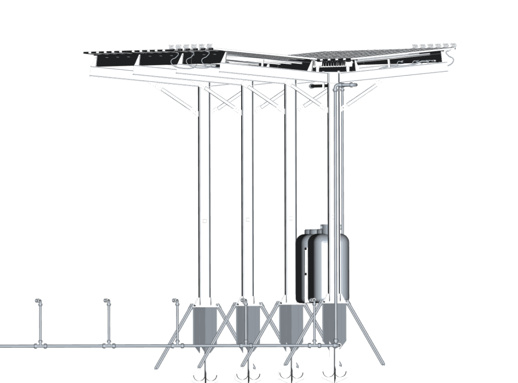System pozwaka użyć zarówno pół-transparentne, Agro moduły glass-glass HJT, jak i standardowe panele bifacjalne TOPCon, o mocach do 740 W i formatach 182–210 mm. Całość można skalować rząd po rzędzie, dostosowując szerokość sekcji i liczbę zbiorników do potrzeb każdego gospodarstwa.
